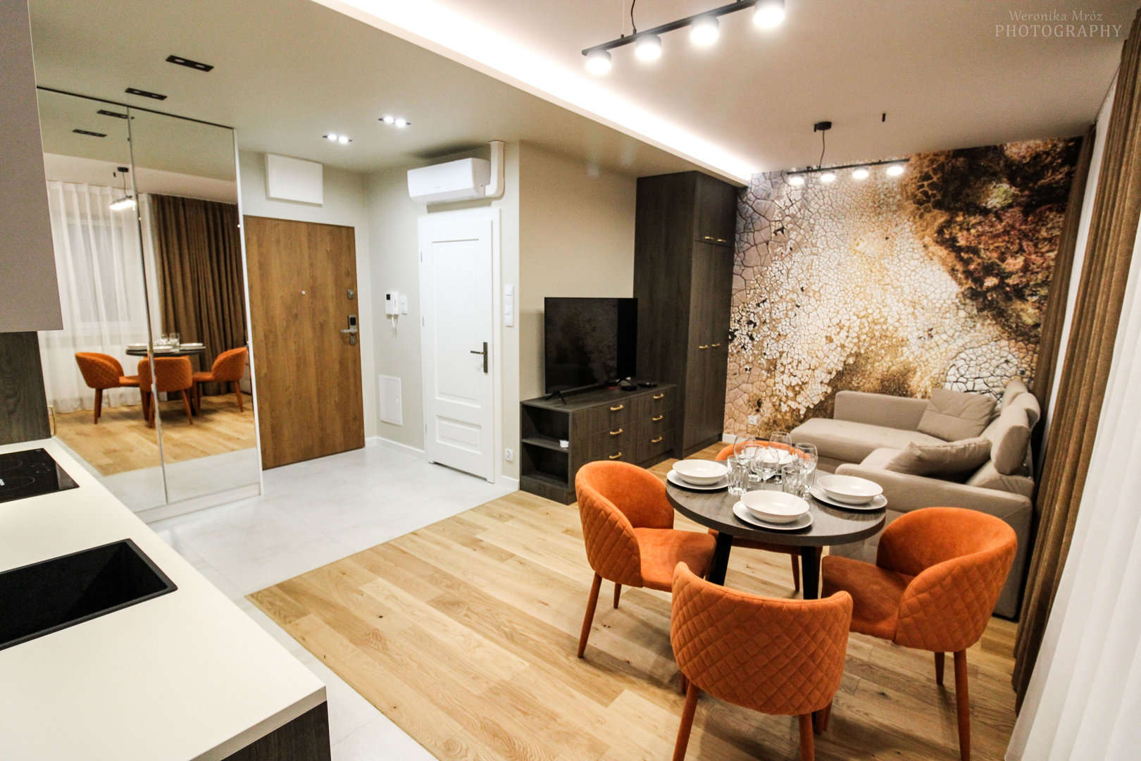 W naszej ofercie znajdą Państwo apartamenty zarówno jedno jak i trzypokojowe, wyposażone w wysokiej klasy meble oraz niezbędny sprzęt RTV/AGD. Wnętrza utrzymane są w naturalnych kolorach, co sprzyja poczuciu komfortu.